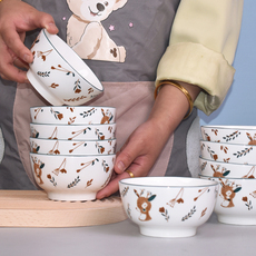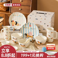 可爱小狗碗盘套装家用餐具陶瓷特别好看的饭碗甜品碗面碗情侣碗碟