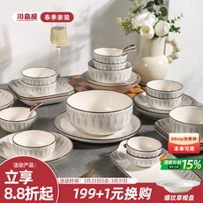 碗碟套装家用奶白色日式风格餐具套装创意双耳汤碗米饭碗盘子菜盘