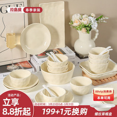 奶油风餐具碗碟套装家用2026新款高颜值米饭碗盘子菜盘圆盘方盘