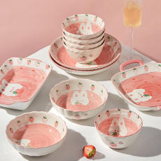 顺祥陶瓷乔迁新年礼物碗碟套装家用新款一人食碗筷两人食可爱餐具