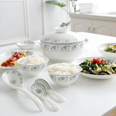 景德镇盘面套装汤碗套装陶瓷餐具碗筷人家-碗碟情侣组合2用勺6碗