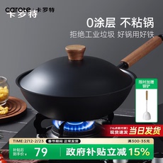 康巴赫正品家用老式铁锅炒锅无涂层平底不粘锅炒菜燃气电磁炉专用