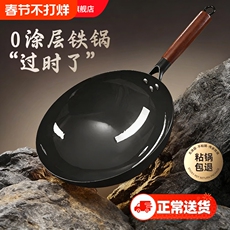梦创章丘铁锅手工炒锅官方旗舰店炒菜锅家用不粘锅平底凹面电磁炉