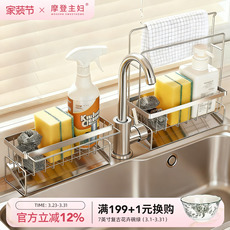 免打孔厨房水龙头沥水置物架水槽收纳架洗碗池海棉钢丝球即卡即用