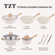 麦饭石组合家用锅组12pcs蒸煮炖煎套锅通用电磁炉不粘锅锅具套装