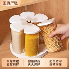 艾仕可旋转五谷杂粮收纳盒家用密封防潮豆子储物储存罐分格米桶