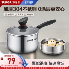 苏泊尔奶锅婴儿宝宝辅食锅无涂层304不锈钢热奶小汤锅煎煮面蒸锅