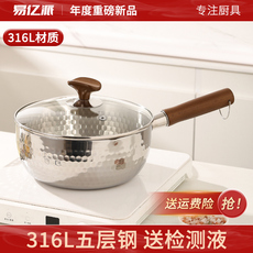 日本进口EGKPPLO316L无涂层雪平锅加厚不锈钢奶锅宝宝辅食小汤锅