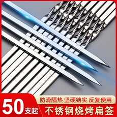 烧烤签子工具不锈钢加厚扁签子烤针糖葫芦圆竹用具套装羊肉串钳子
