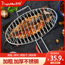 横条烤鱼夹子无磁不锈钢烤鱼架子烤鱼网夹烧烤用具商用大小号家用