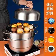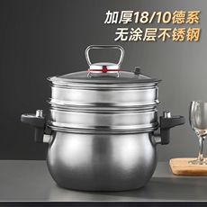 新款不锈钢微压炖煮汤锅多功能煲汤锅带蒸笼特厚大容量不挑灶具