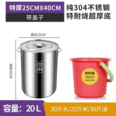 不锈钢304高锅锅汤汤锅带盖子商用家用圆桶油桶大Y容量加厚水桶