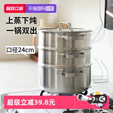 德国316不锈钢汤锅加厚家用蒸锅煮粥蒸煮一体火锅电磁炉双耳炖锅