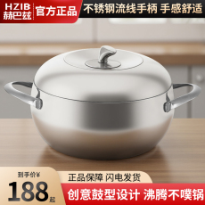 赫巴兹食品级加厚304不锈钢苹果汤锅家用电磁炉燃气蒸煮锅16-24cm