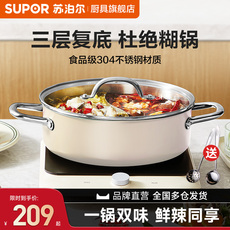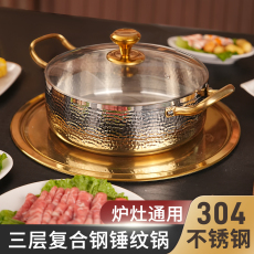 加厚304不锈钢汤锅火锅鸳鸯锅清汤锤纹商用三层钢燃气电磁炉通用