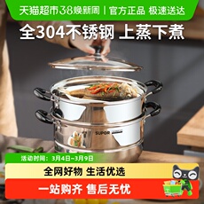 苏泊尔蒸锅家用304不锈钢蒸笼双层三层多层电磁炉煤气灶通用汤锅