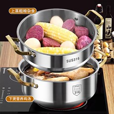 不锈钢汤锅特厚家用316食品级蒸锅电磁炉专用煮汤锅带蒸笼蒸屉锅
