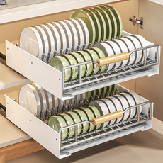 不锈钢抽拉碗碟收纳架厨房橱柜内厨具沥水置物架多功能抽屉式拉篮