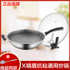 德国三头鹰无涂层钛锅不粘锅电磁炉燃气纯钛炒锅多功能家用炒菜锅