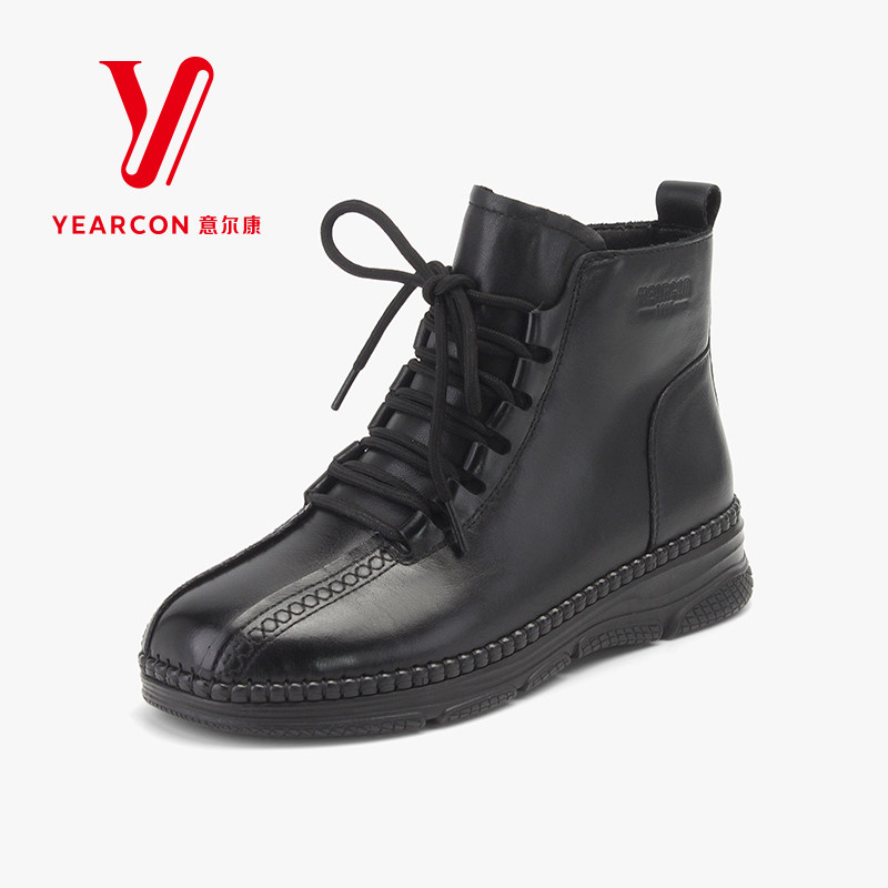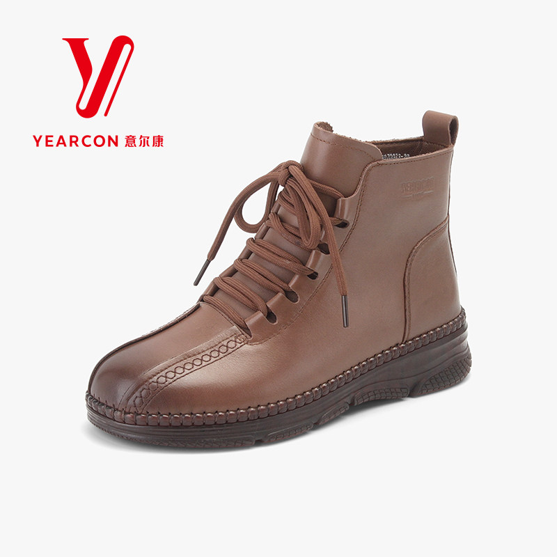 意尔康女靴2025新款冬季女鞋加绒真皮短靴女保暖靴子软底妈妈棉鞋