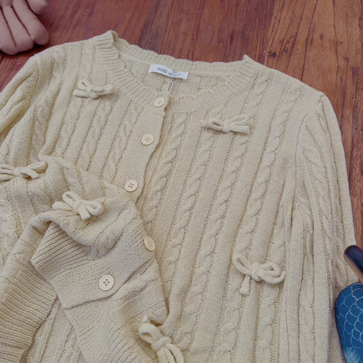 rom2复古甜美 温柔风法式蝴蝶结 学院风针织毛衣披肩开衫 小外套