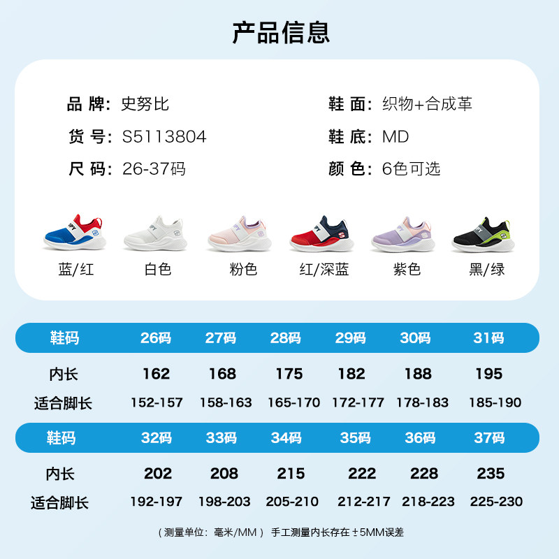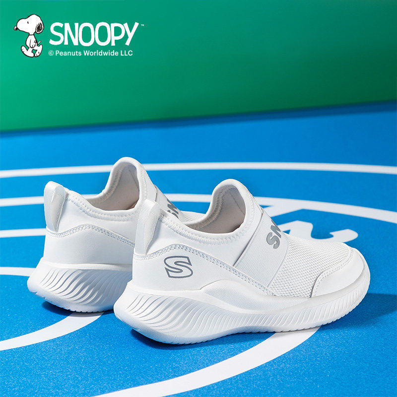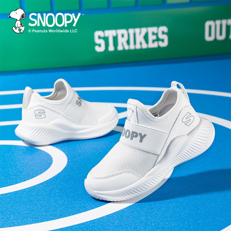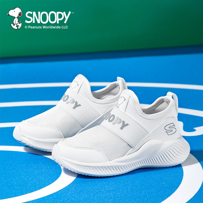 史努比童鞋男童小白鞋女童鞋子网鞋春季新款儿童运动鞋白色一脚蹬