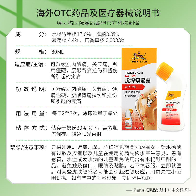 香港版TigerBalm新加坡虎标镇痛露80ml腰颈肩肌肉酸痛拉伤止痛液