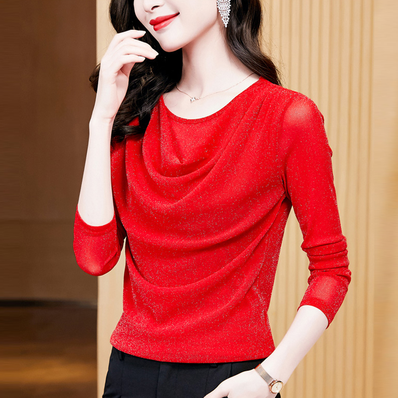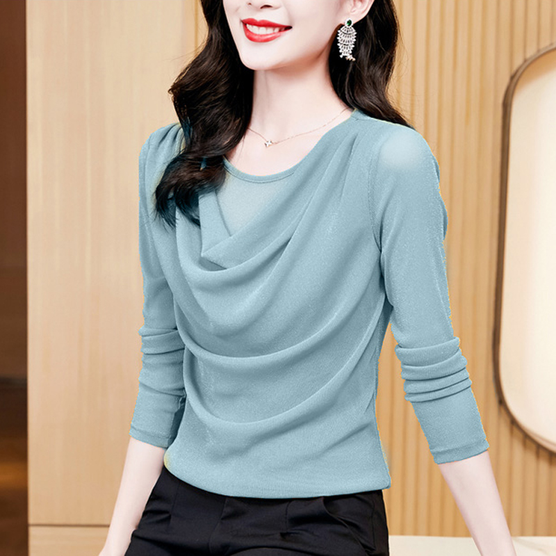 堆堆领网纱打底衫女内搭秋季2025年新款洋气小衫蕾丝长袖t恤上衣