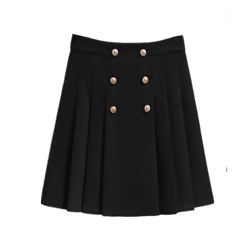 2025春夏新款时尚气质显瘦高腰小个子a字半身裙女双排扣百褶短裙