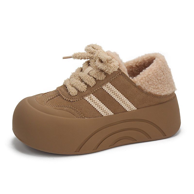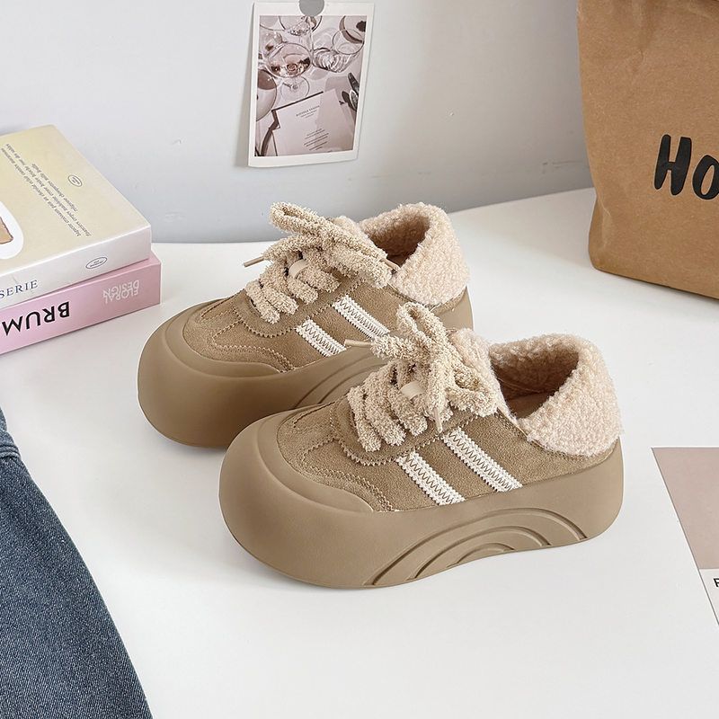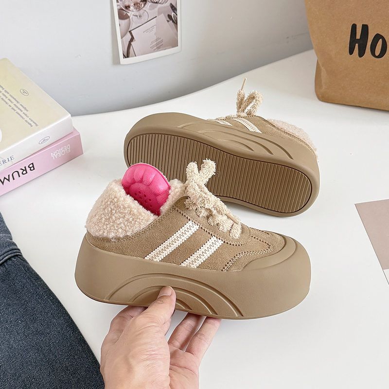 韩版加绒松糕厚底面包德训鞋女2025秋冬新款休闲增高板鞋百搭女鞋