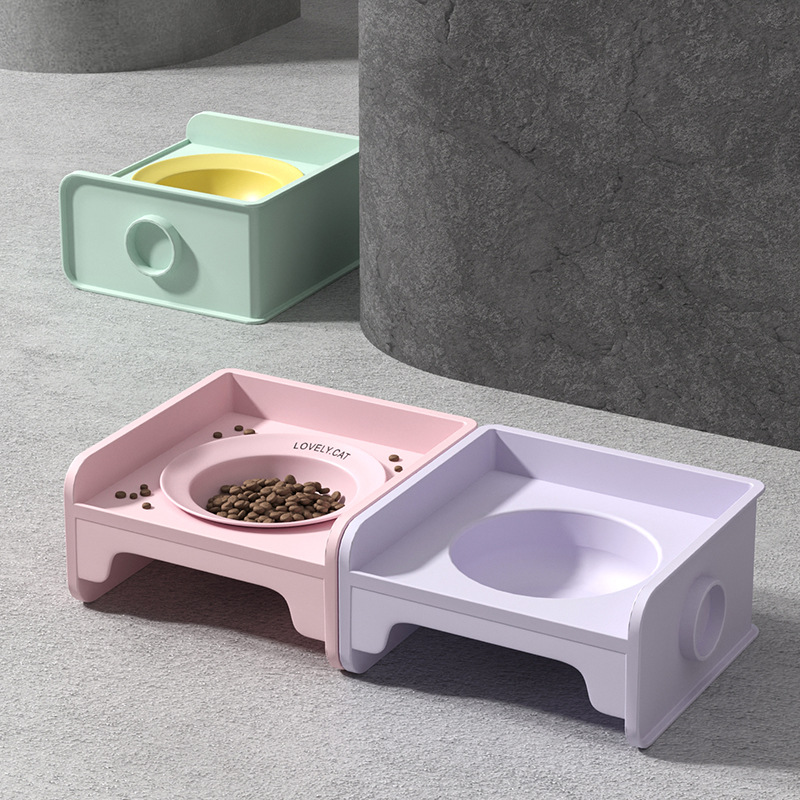 【奶呼呼】多巴胺方块猫碗架水碗不易打翻保护颈椎陶瓷狗碗增高架