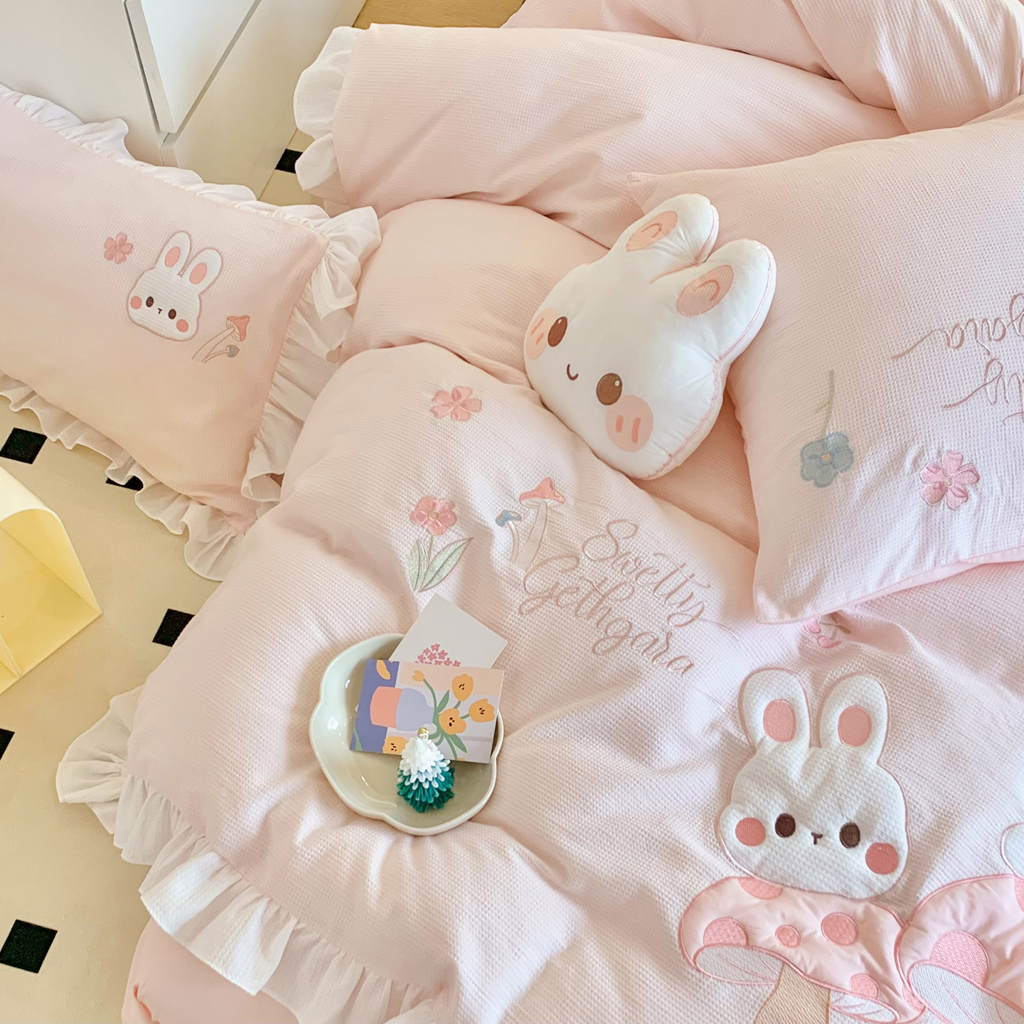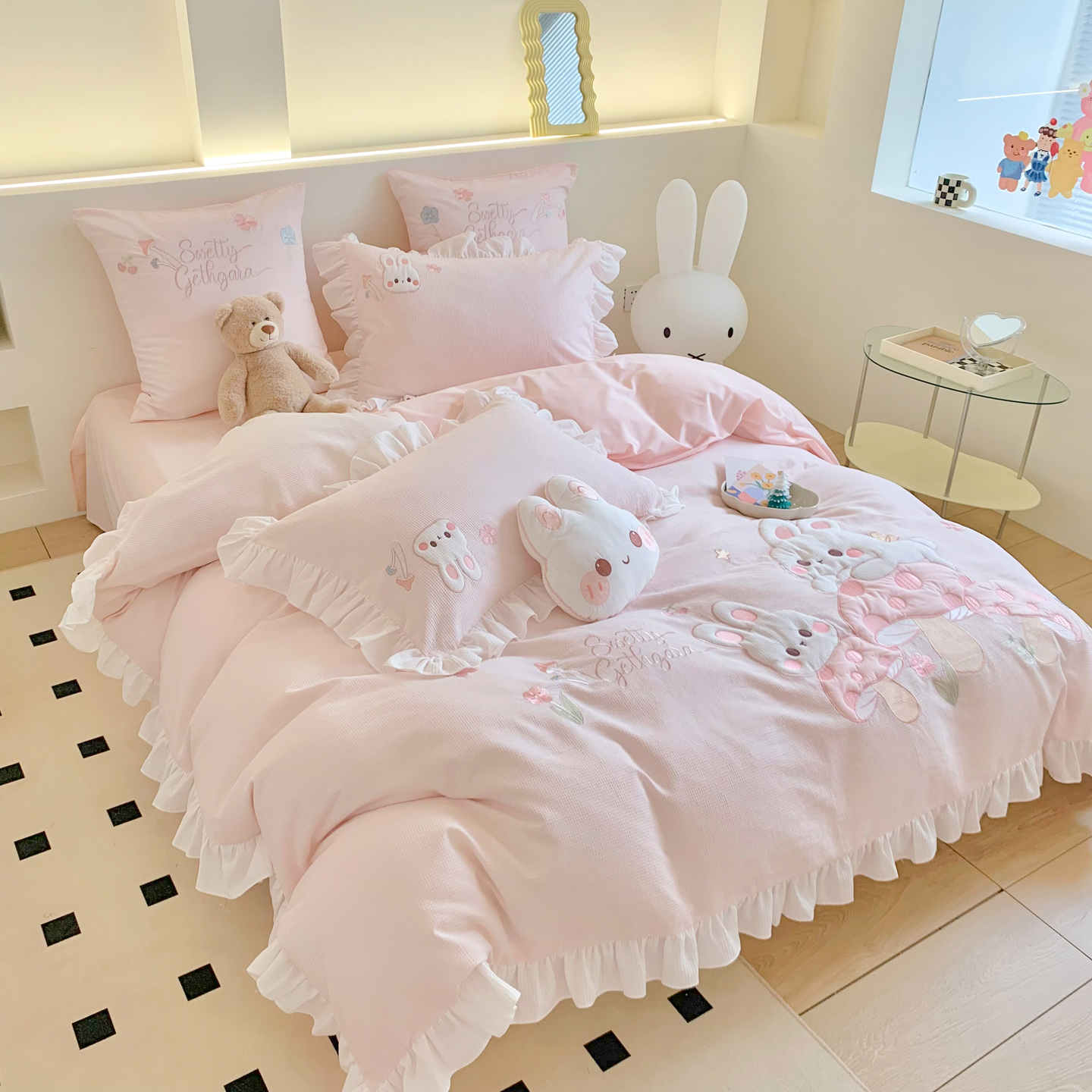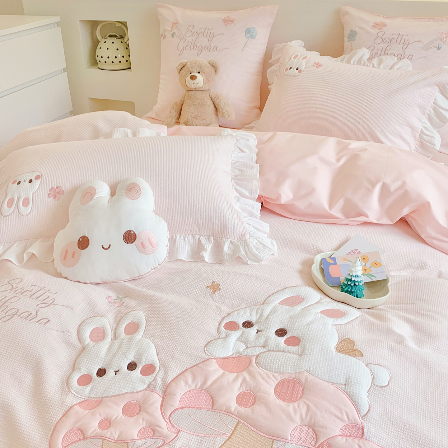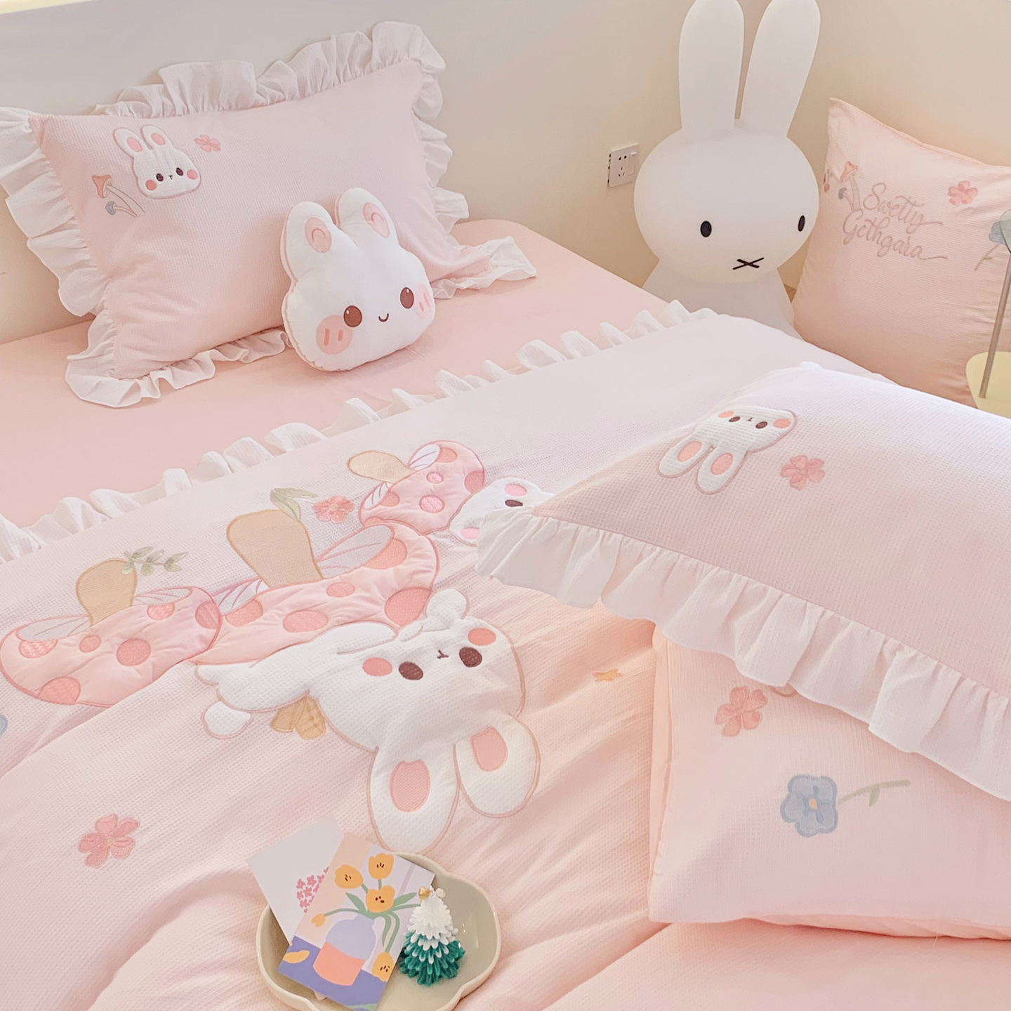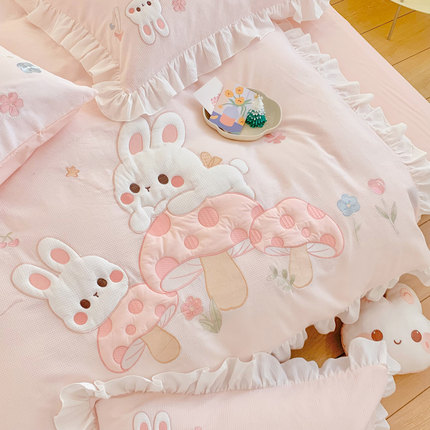 60S全棉华夫格四件套-蘑力兔兔