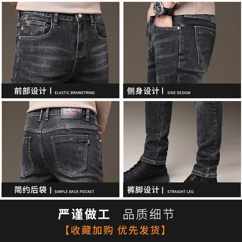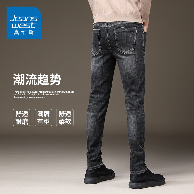 KZH真维斯黑色牛仔裤男夏季新款韩版修身直筒裤潮流轻奢休闲长裤
