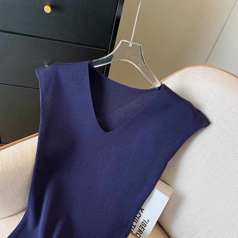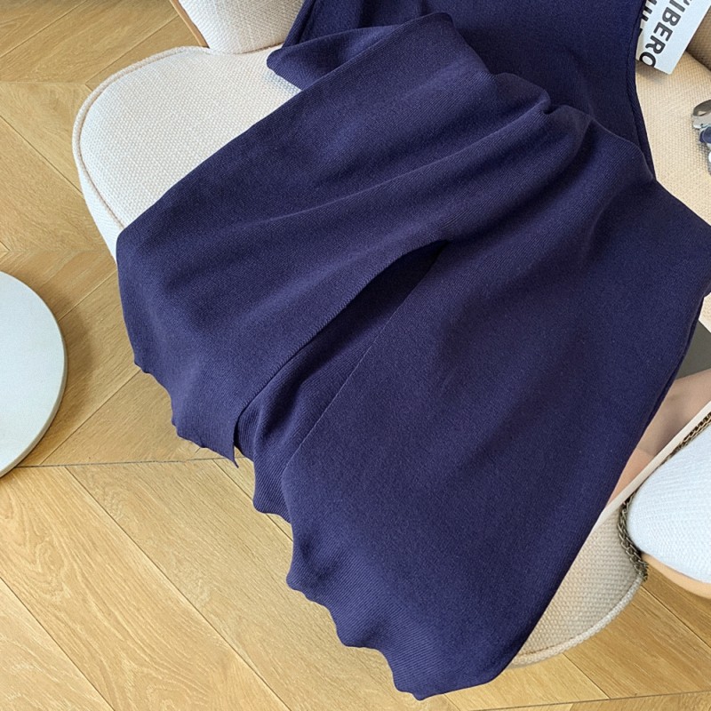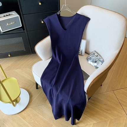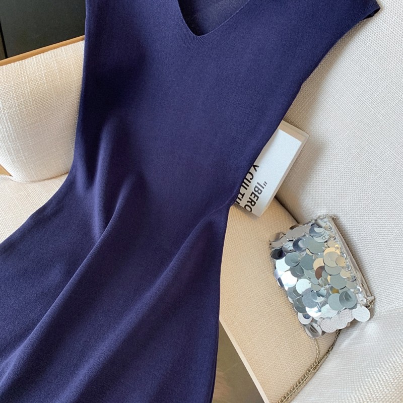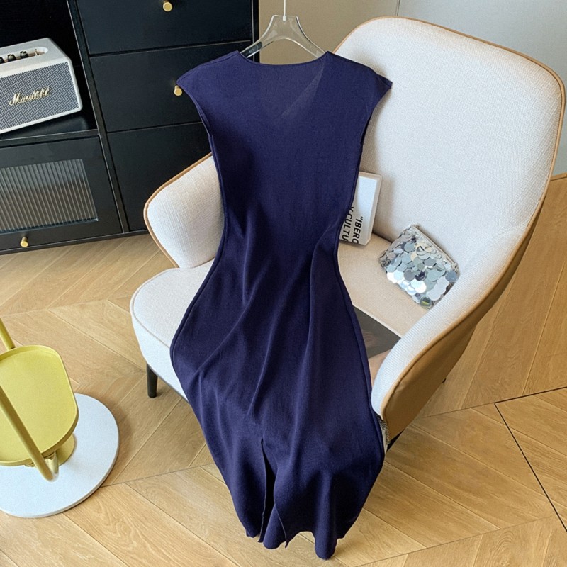 批发修身收腰开叉无袖针织连衣裙