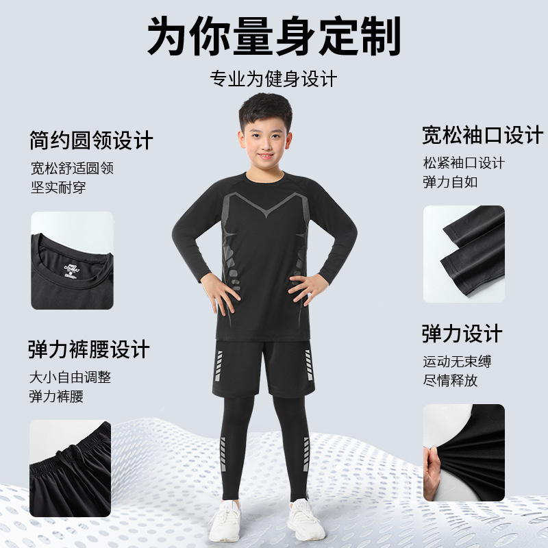 儿童运动套装秋季跑步速干衣散打篮球训练服男童紧身衣服长袖秋冬