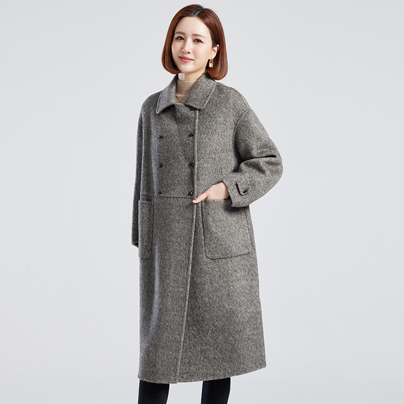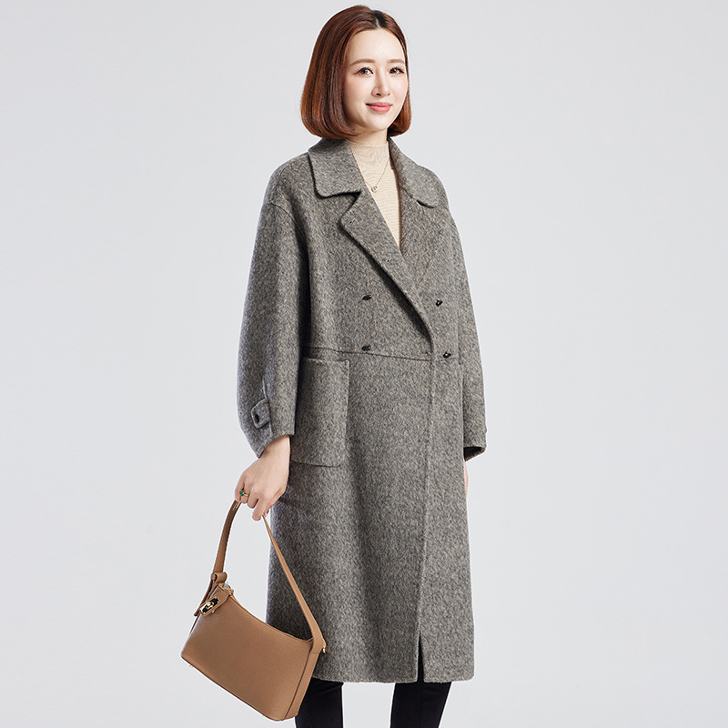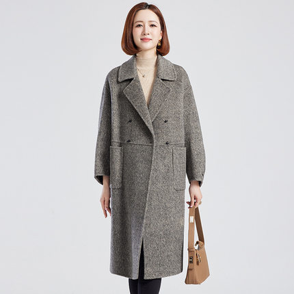 2025秋新款双面羊绒大衣女中长款韩版翻领宽松大码通勤羊毛呢外套