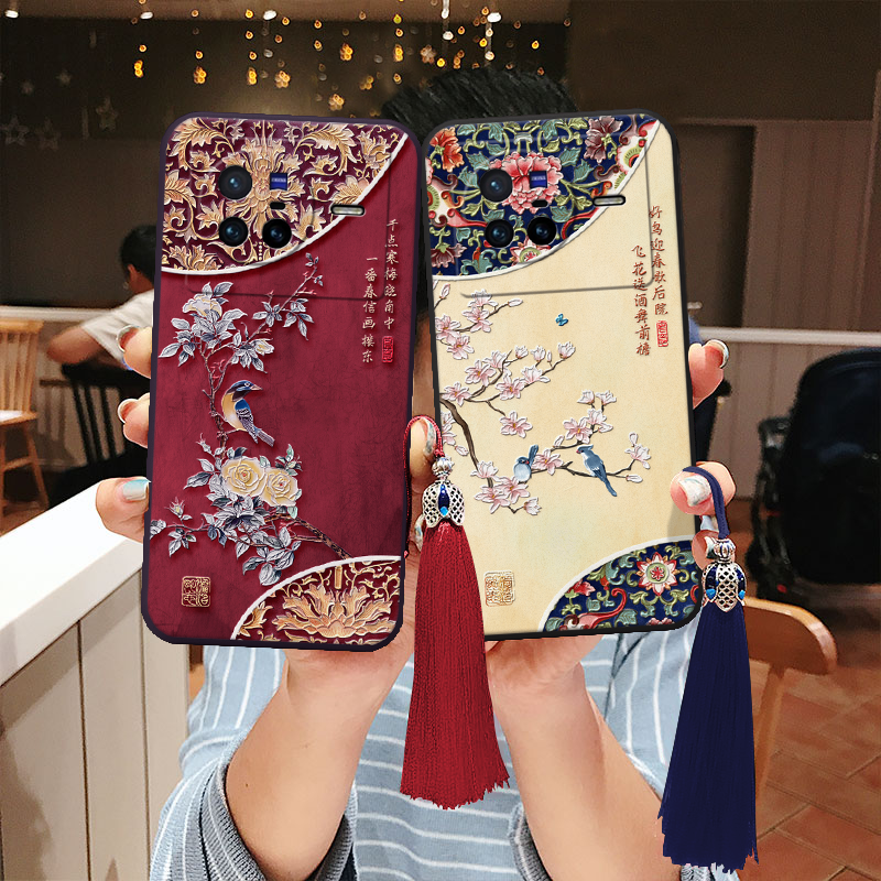 适用vivo浮雕手机壳x200国风x100花鸟pro全包x90女x21软壳x27妈妈x80新品x70玉兰硅胶xnote栀子花x23老年人女