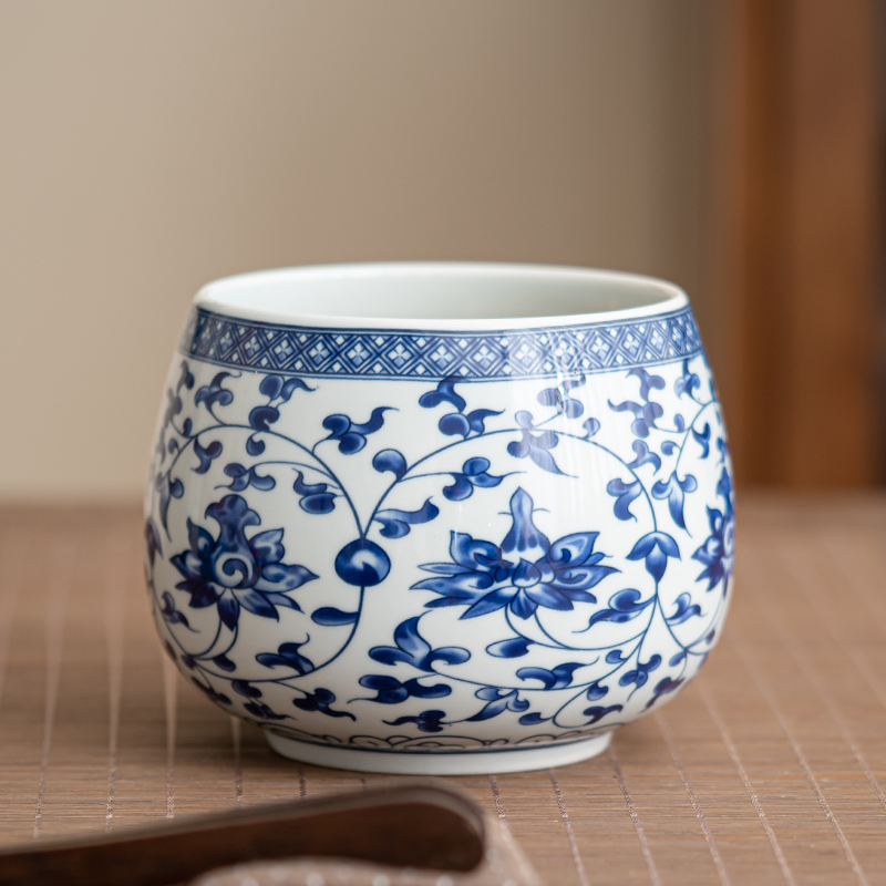 高端青花瓷茶洗茶渣缸陶瓷建水水盂废水桶烟灰缸茶具配件茶水缸