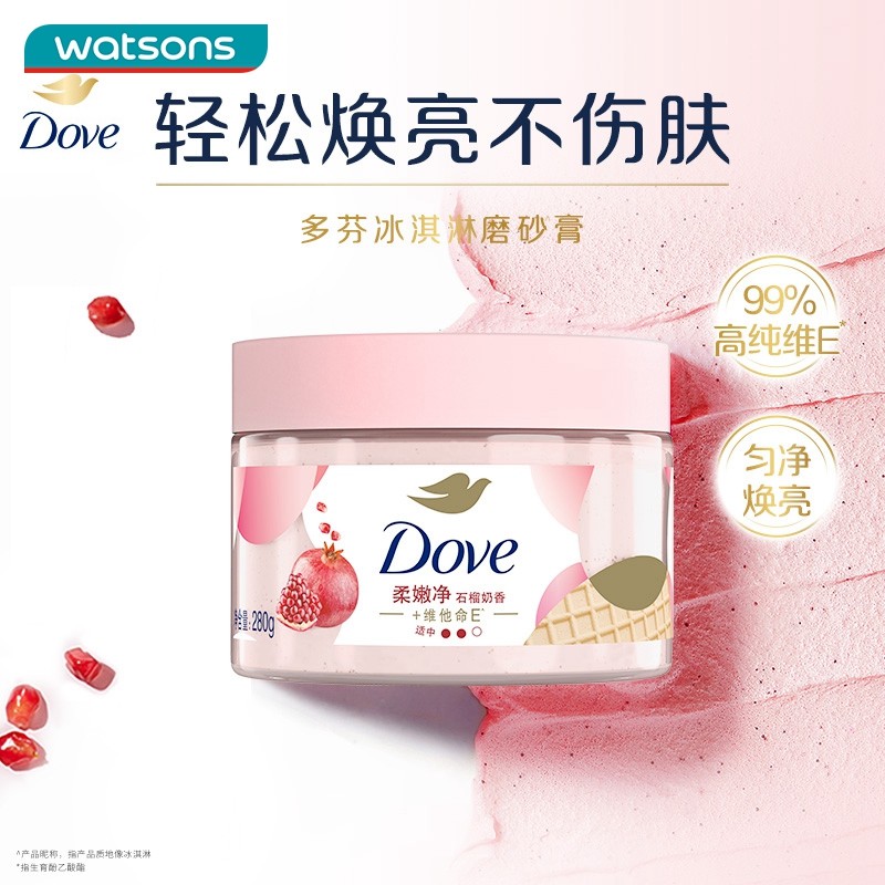 屈臣氏DOVE多芬冰淇淋身体磨砂膏石榴奇异果柔滑焕亮乳霜新旧包装