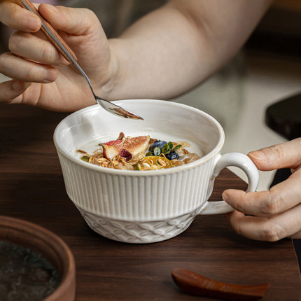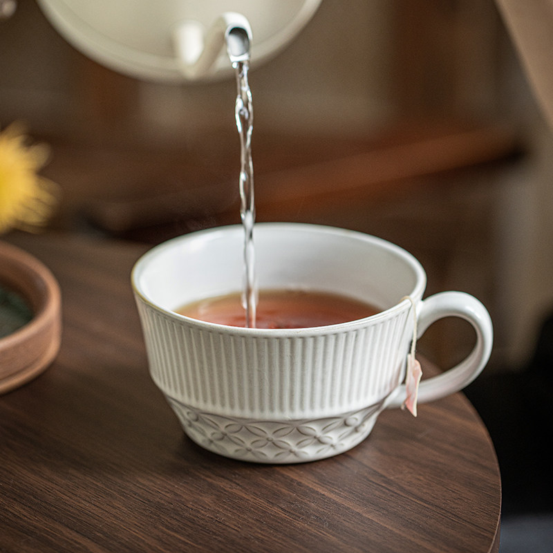 巷子尾〖巨推荐浮雕花纹早餐杯〗大容量燕麦杯陶瓷喝水杯子马克杯