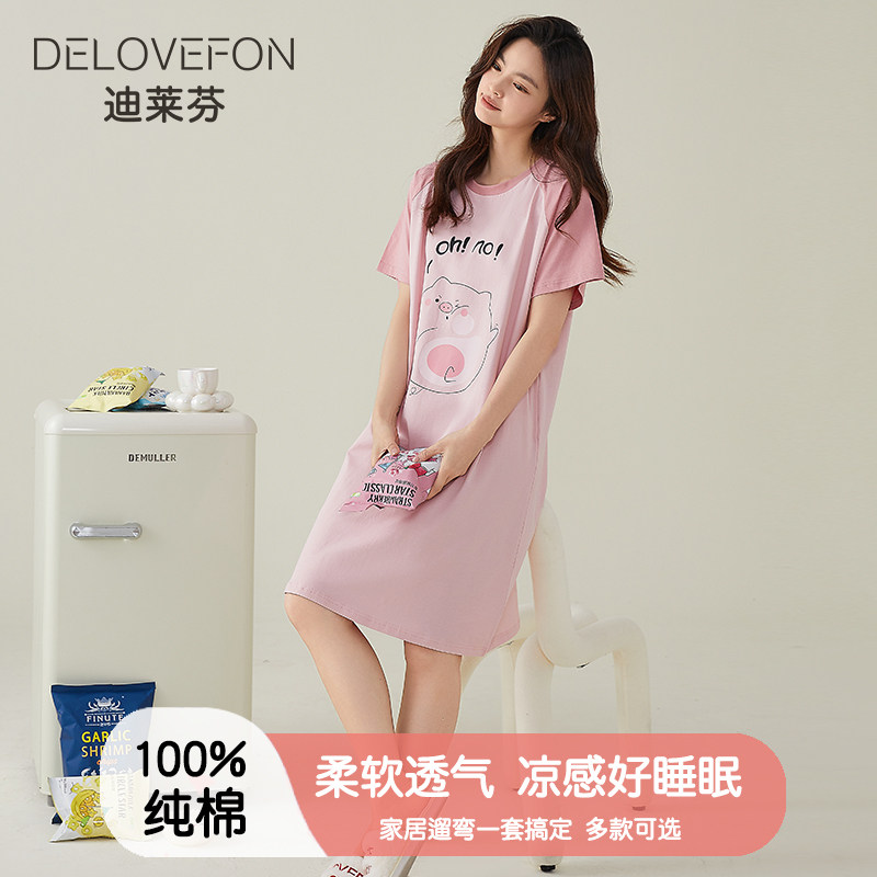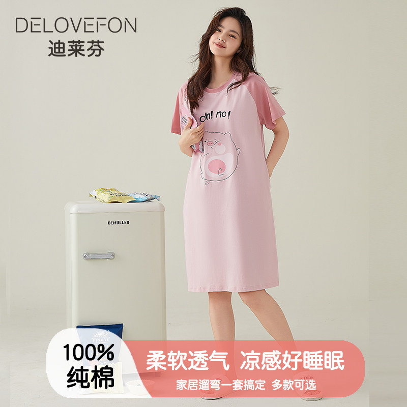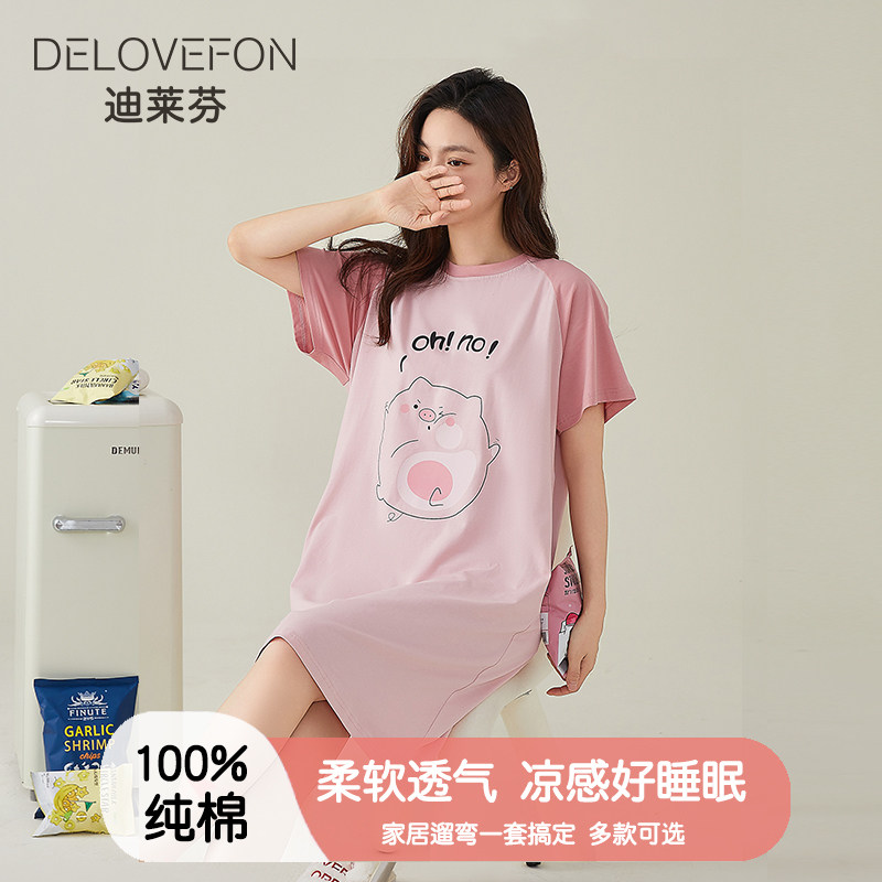 睡裙女士夏季纯棉短袖中长款连衣裙休闲卡通夏天睡衣家居服可外穿