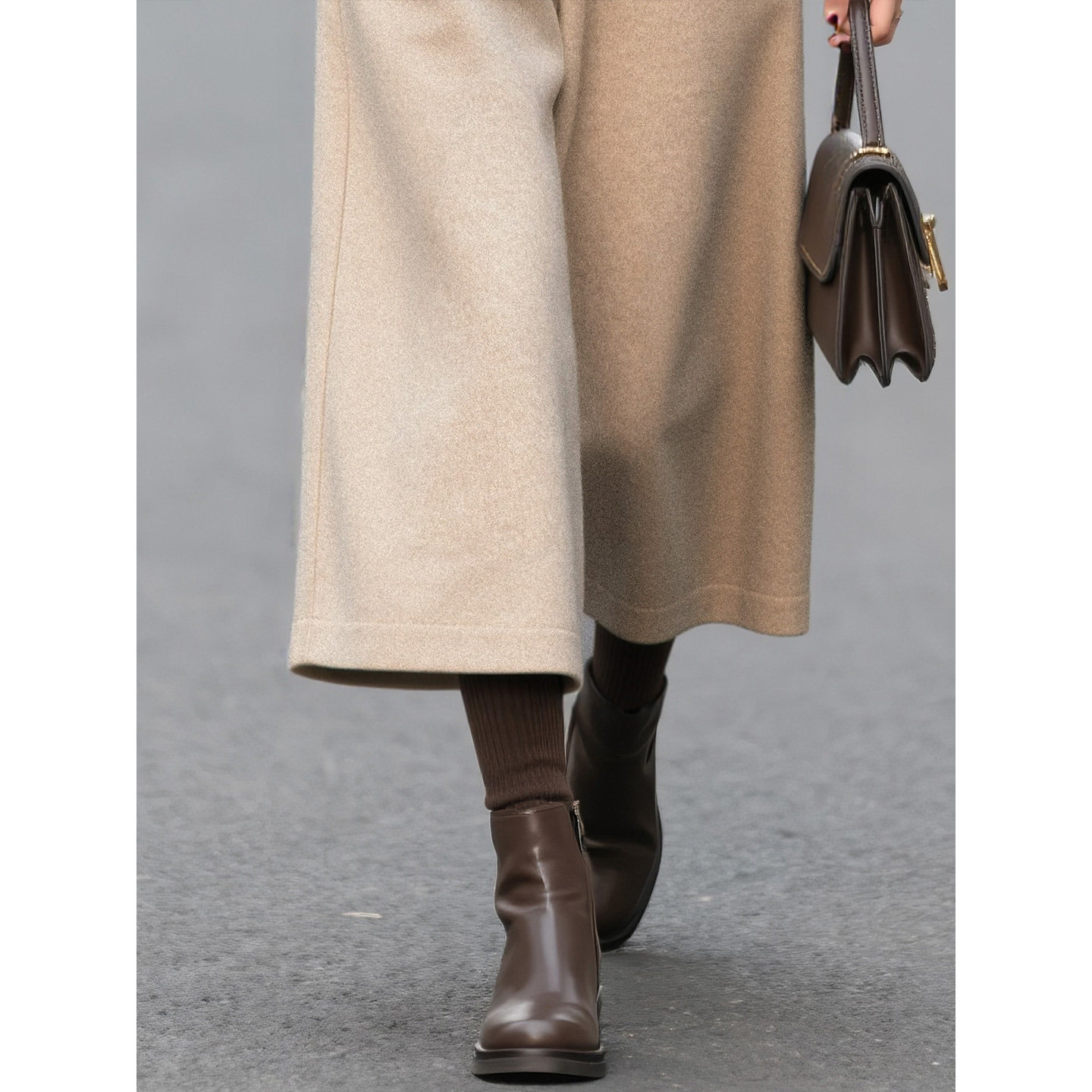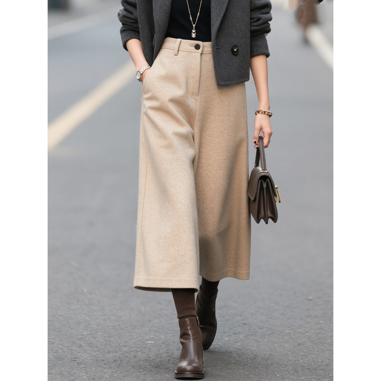 燕麦色毛呢七分阔腿裤女2026秋冬