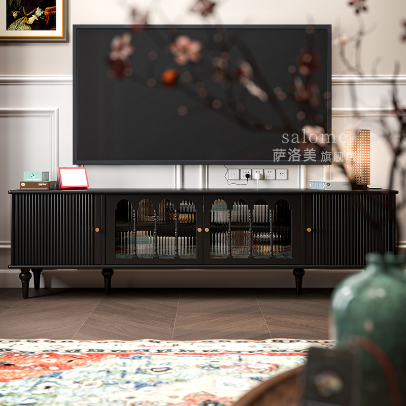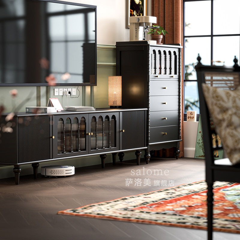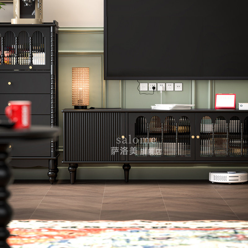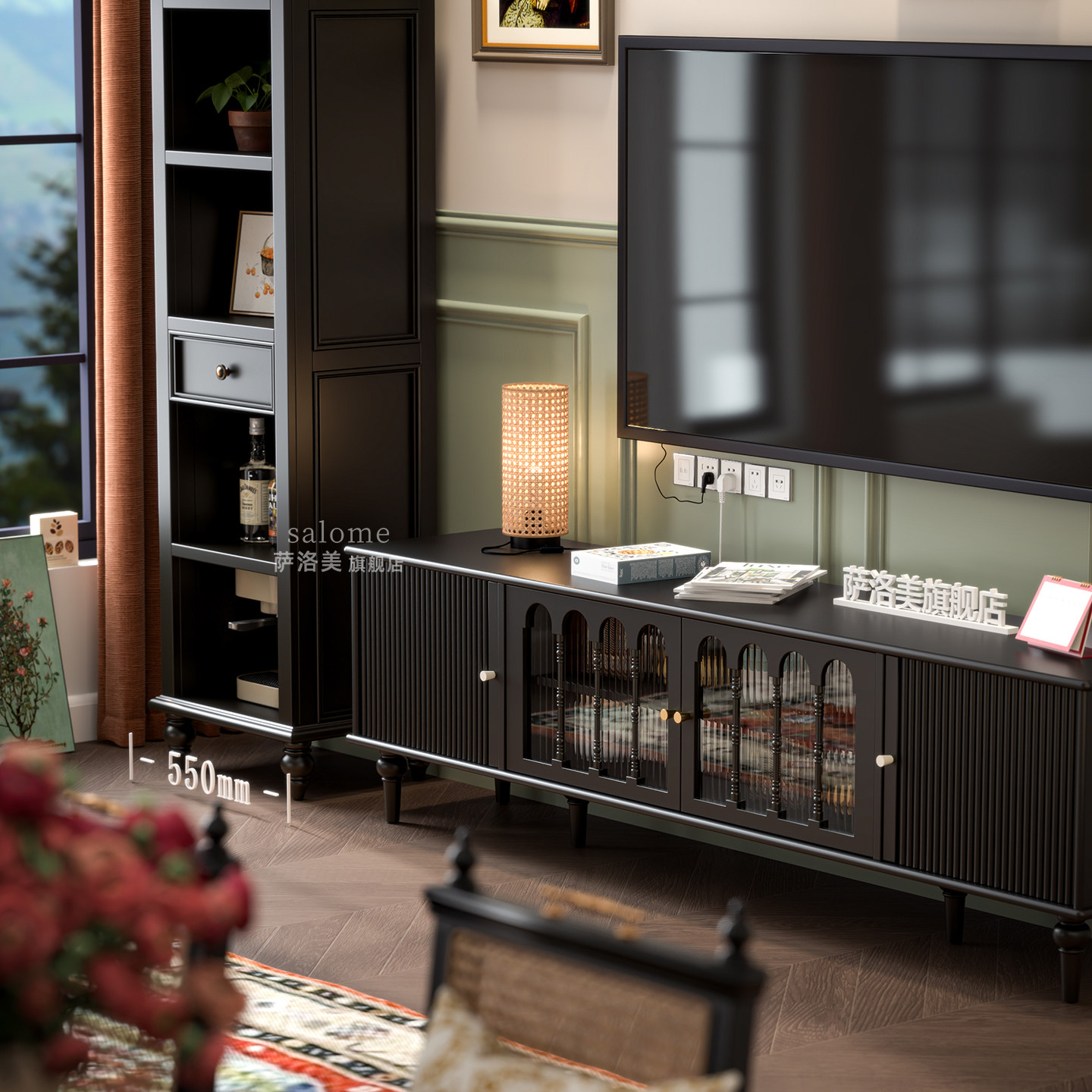 法式实木电视柜落地客厅美式2026新款中古电视机柜收纳储物柜一体