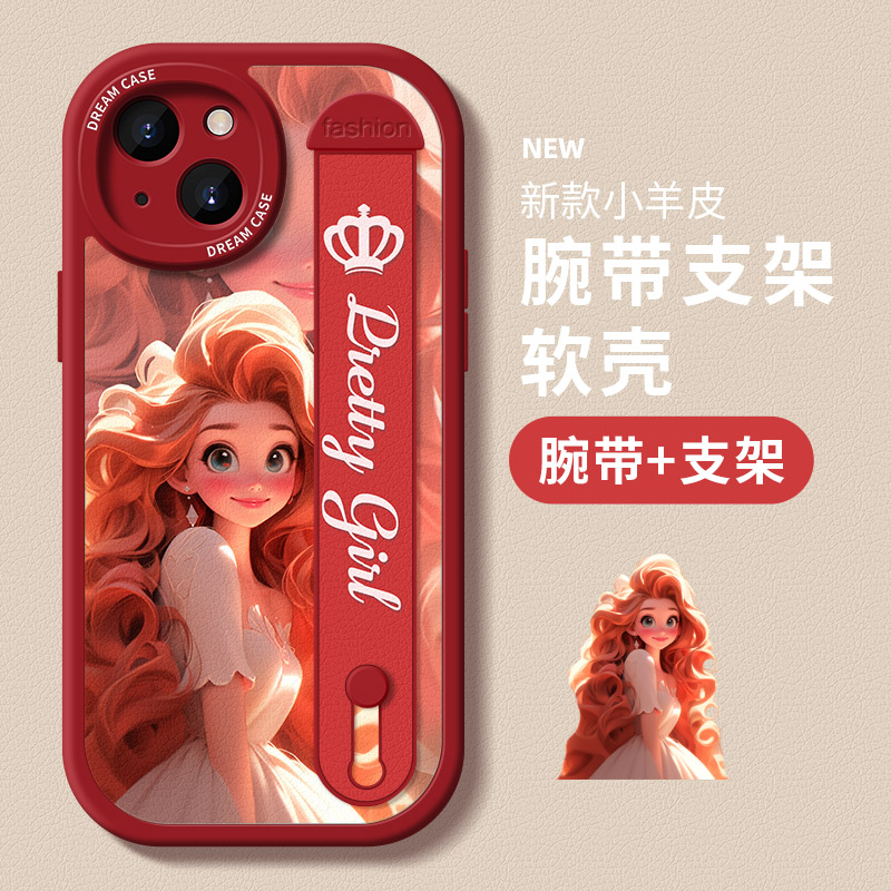 卡通少女适用苹果15手机壳iphone14pro腕带13pro女款12mini全包11promax硅胶8/7/6plus防摔xr/xs公主max套se