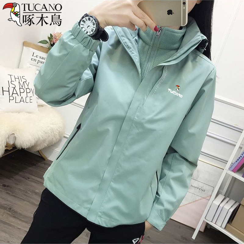 啄木鸟冲锋衣女三合一可拆卸外套