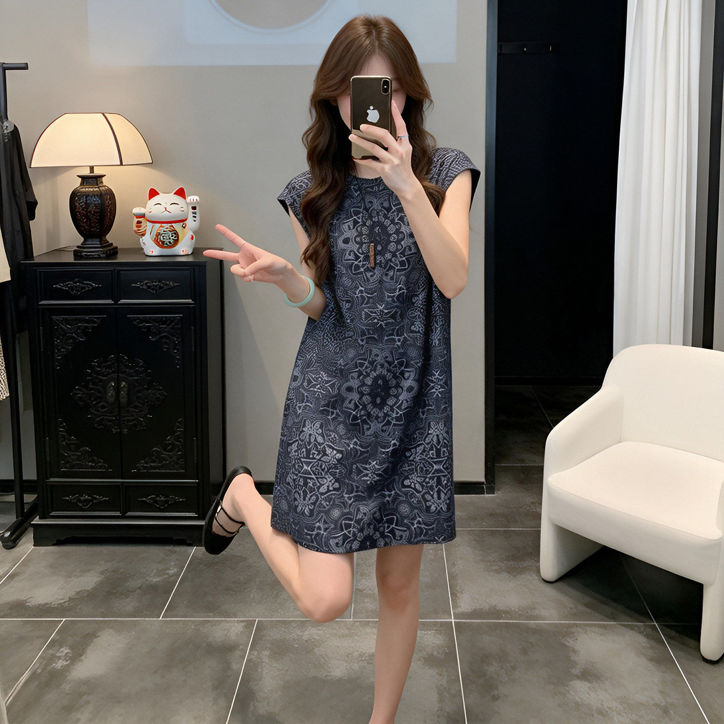 法式复古印花圆领无袖连衣裙女夏季新款海边度假风背心中长款裙子