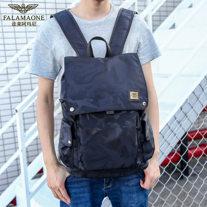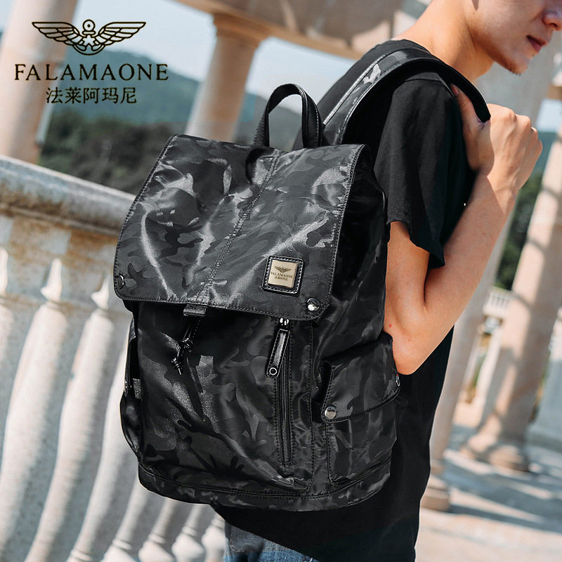 法莱阿玛尼男士双肩包运动休闲旅行迷彩包潮牌包帆布透气大学生潮