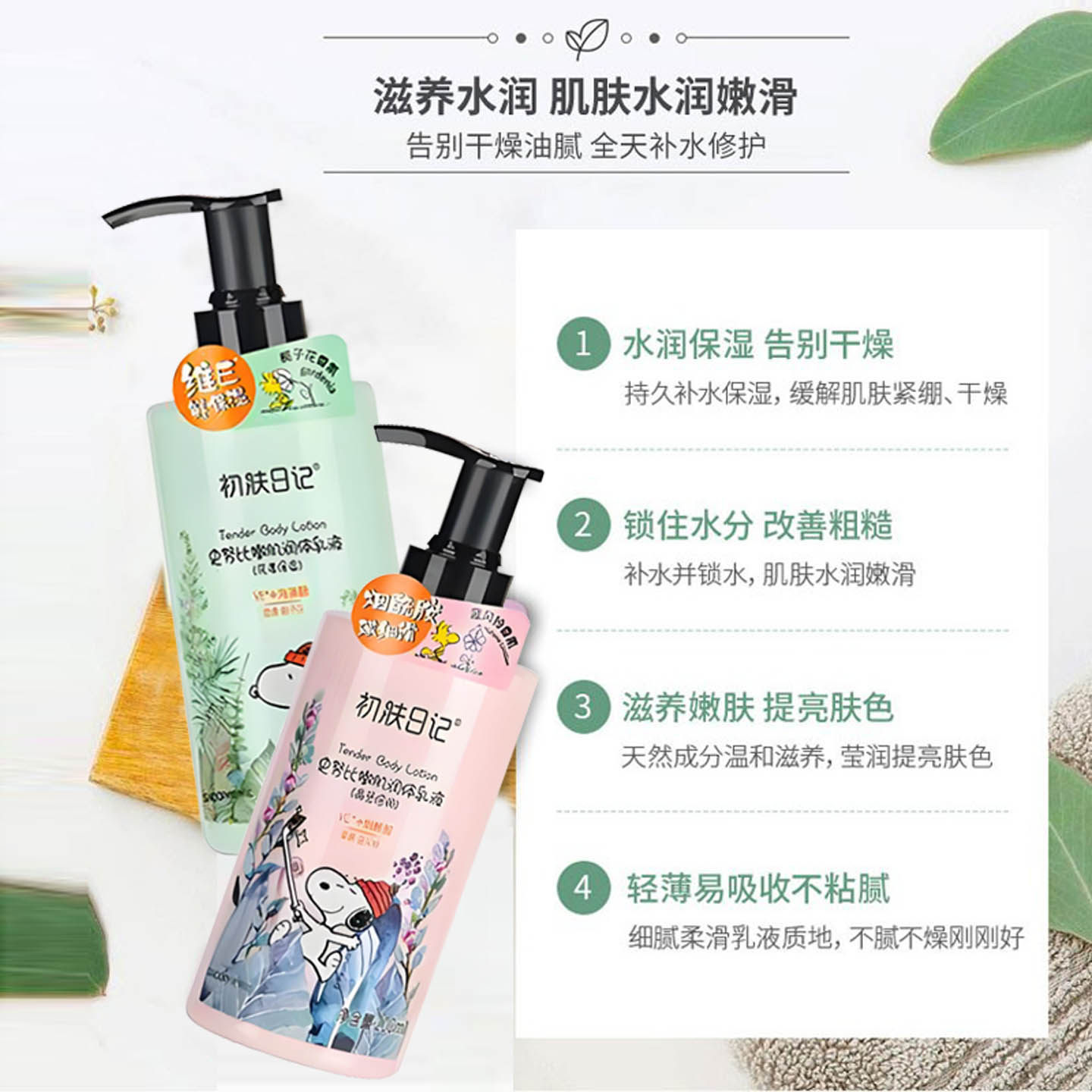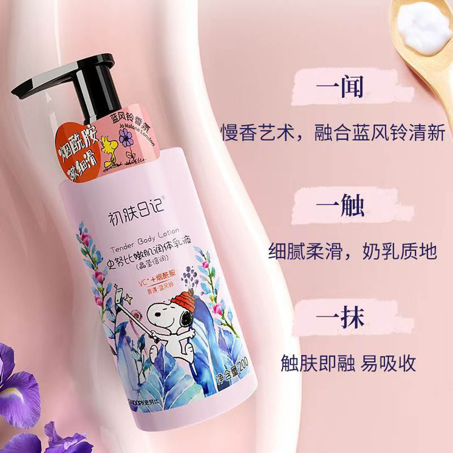 史努比嫩肌润体乳液栀子花补水保湿蓝风铃莹亮倍润肌肤香氛身体乳