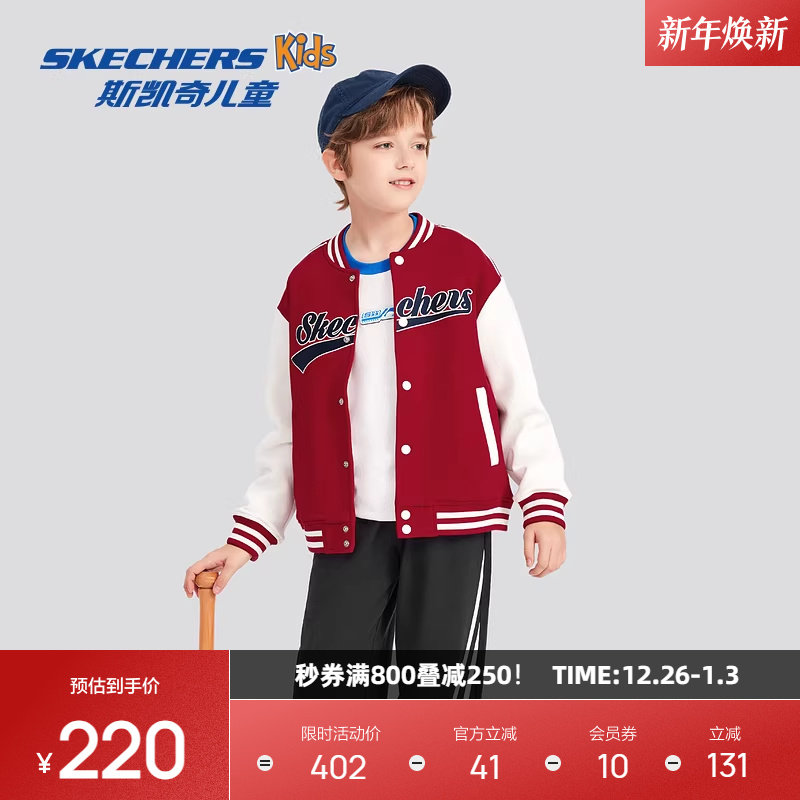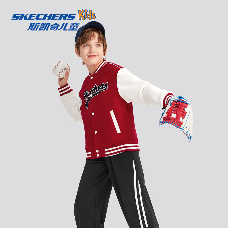 斯凯奇童装男女童棒球服儿童秋冬新款针织休闲运动外套潮流时尚