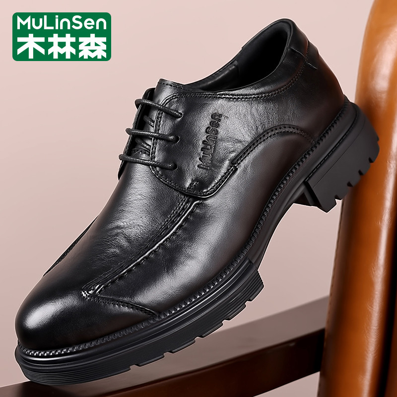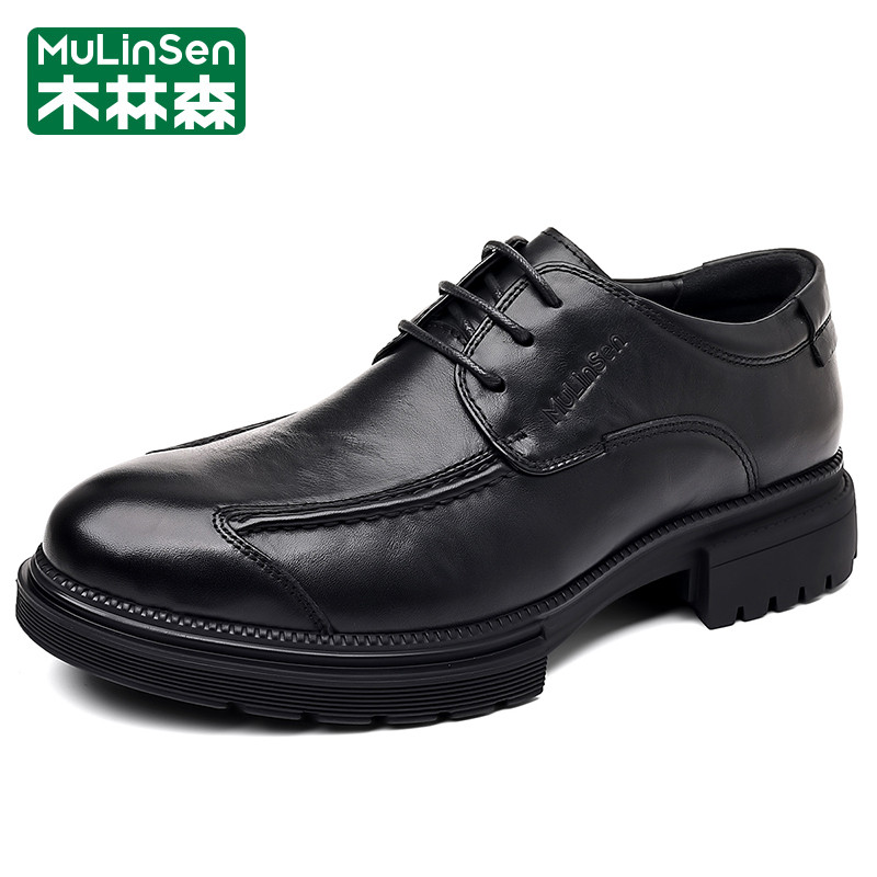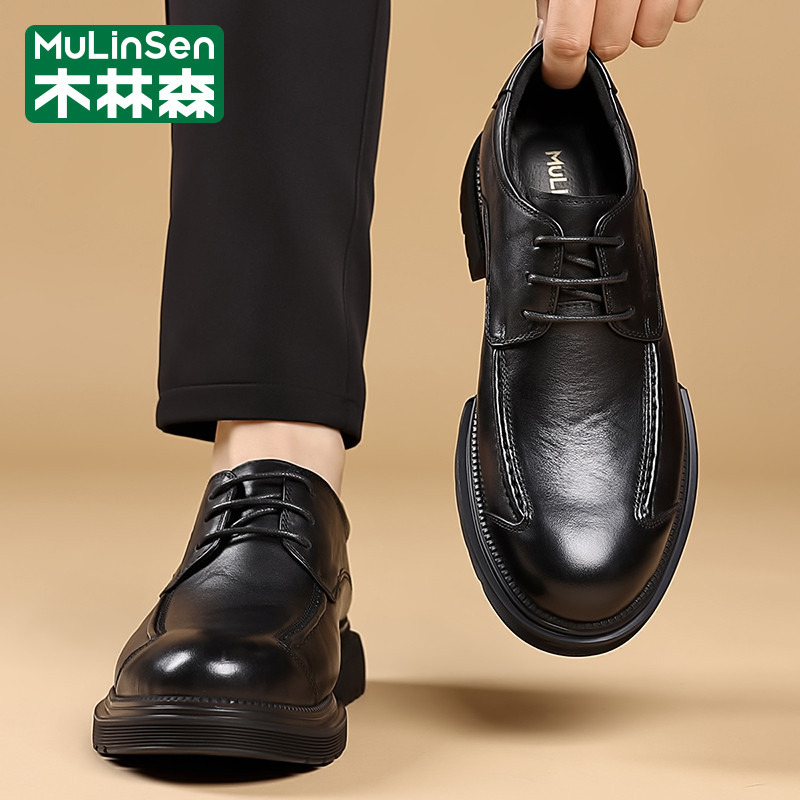 木林森皮鞋男冬季商务正装西装休闲德比头层牛皮厚底工装马丁潮鞋